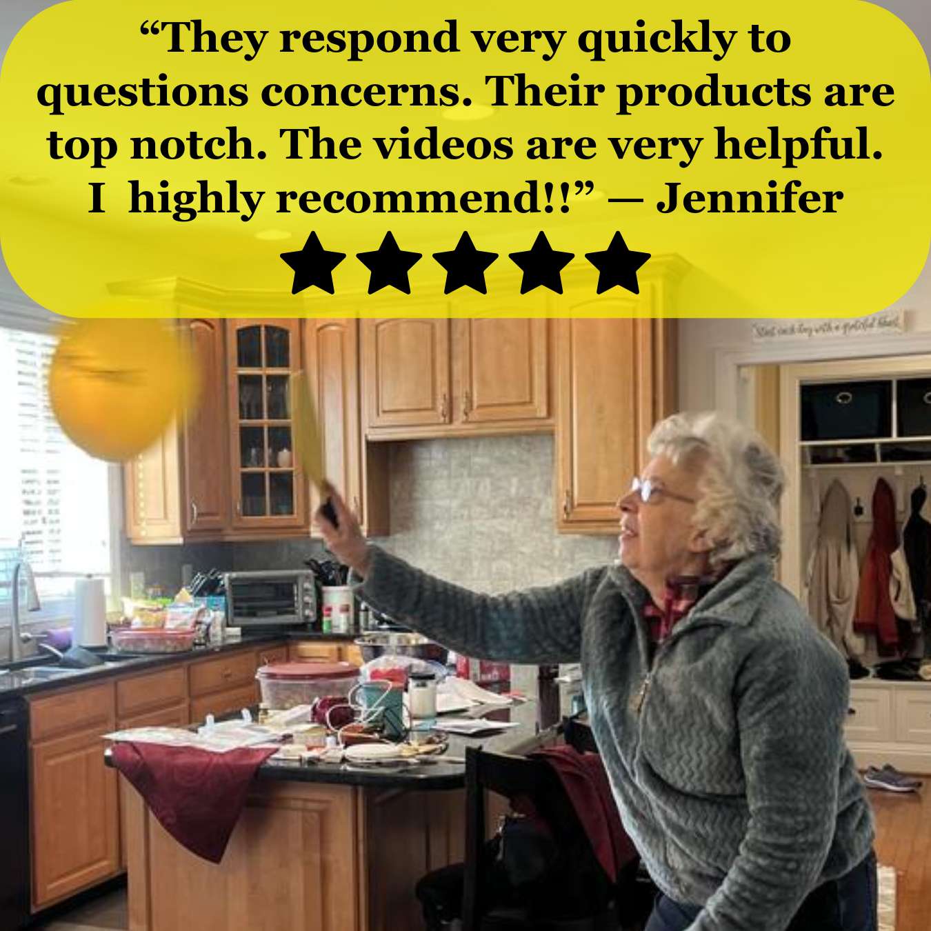 Two paddles, 2 agility volleys & video-guided exercises created by me, the kinesiologist for seniors!