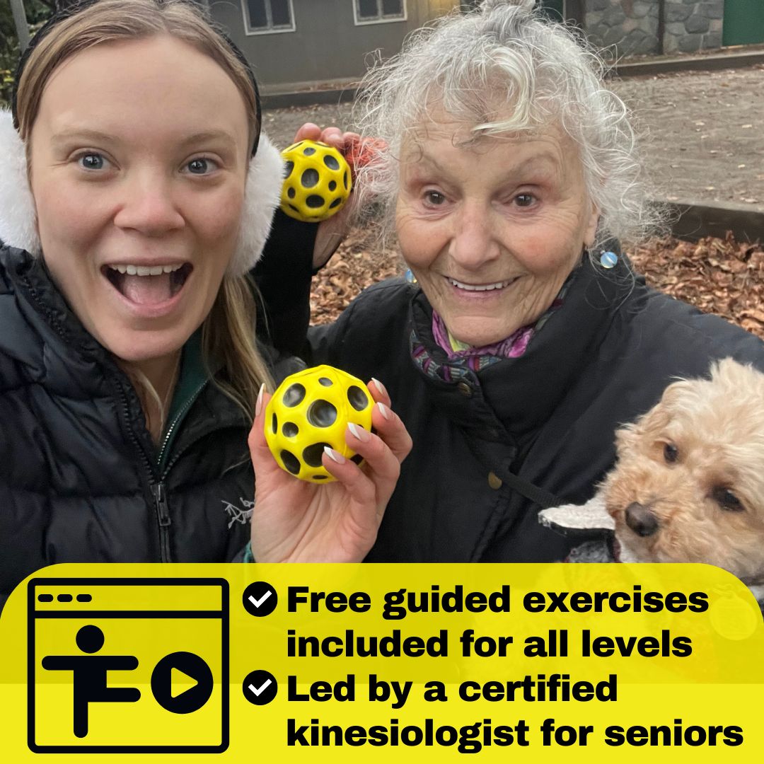 It has the perfect bouncibility and unpredictability for seniors like you and includes video-guided exercises... for all ability levels.