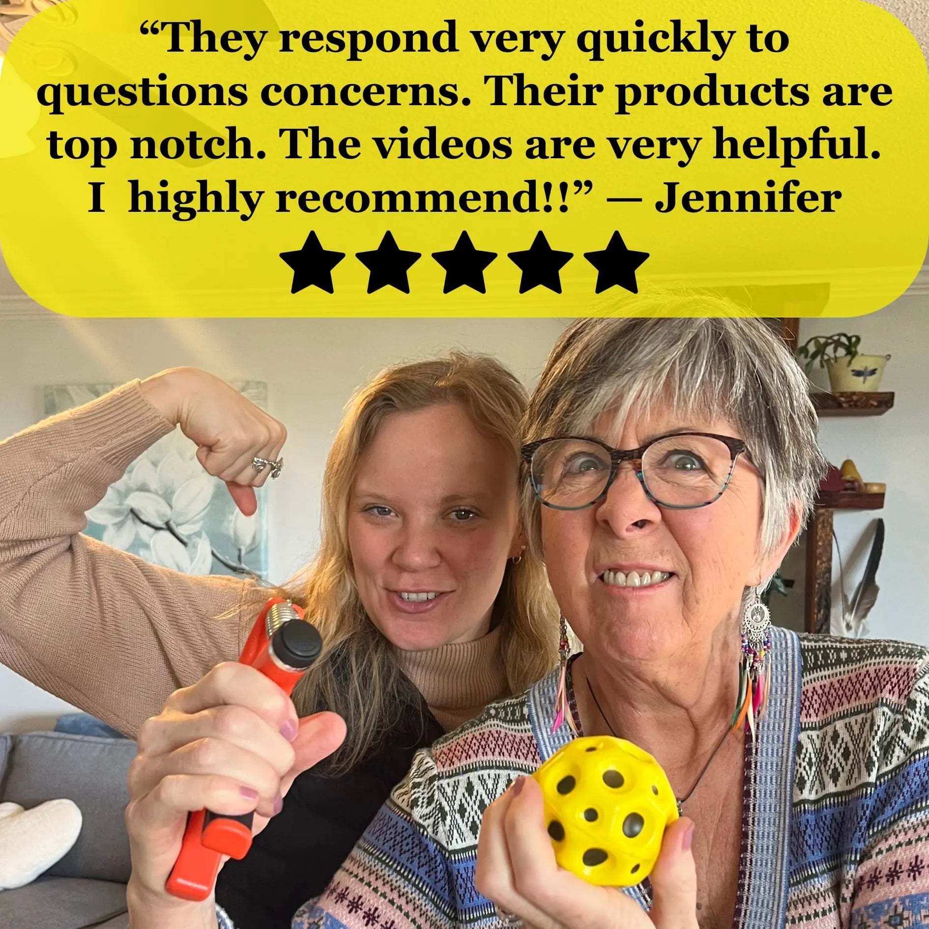Yes, this bundle is designed with older adults in mind, including those with arthritis or limited mobility. The Grippey hand gripper is soft and gentle on the hands, making it easy to squeeze even if you have joint pain. The Volley balloons and Strikeyball set can be used while seated or standing, and you can go at your own pace without feeling rushed or strained. The Sockeys provide extra stability without restricting circulation, making every part of this bundle safe, comfortable, and effective for your needs.