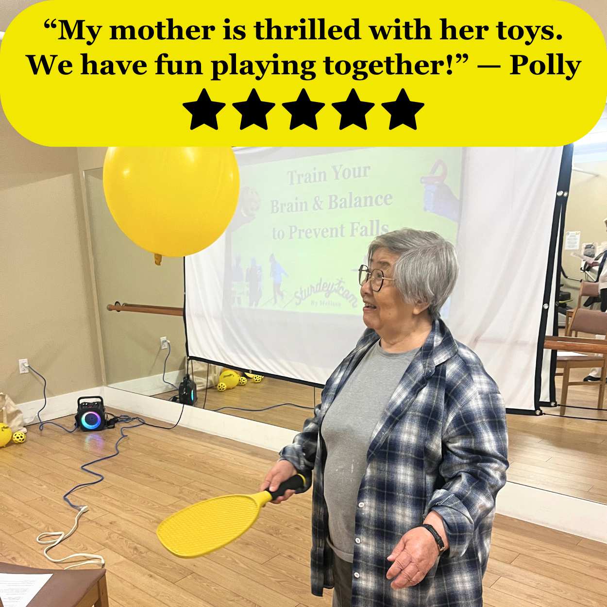 The guided exercises I give you challenge your balance and hand eye coordination, making you sturdier and sharper!